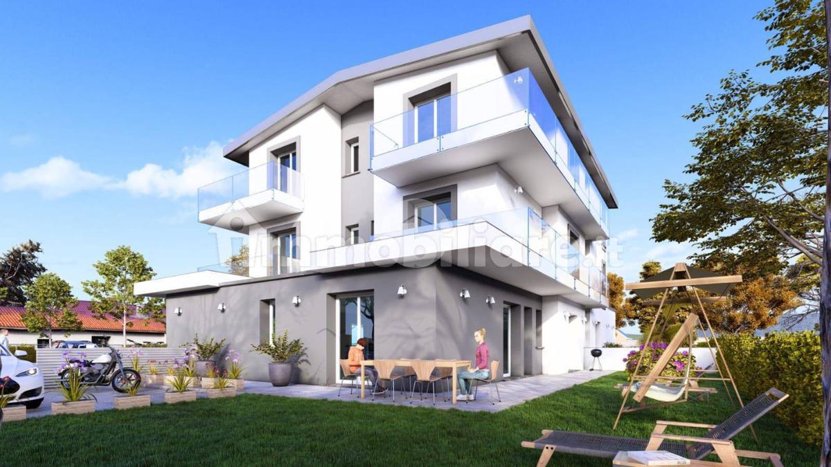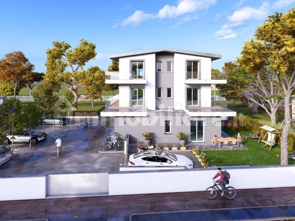 A soli 550 metri dalla spiaggia e dalla splendida pineta, proponiamo appartamenti di nuova costruzione in una palazzina elegante e moderna composta da sole 6 unità, servita da ascensore.